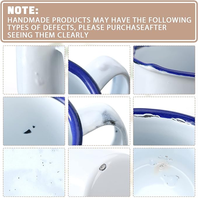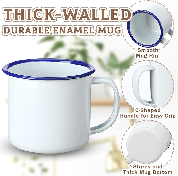 - Easy to Hold: our enamel coffee cup set fits your hand properly, and there is a handle to grasp comfortably and hang easily, strong construction can hold proper weight, helping you enjoy your hot or cold drinks; The cup can be cleaned in the microwave and dishwasher, so you can have more time to enjoy your beautiful day