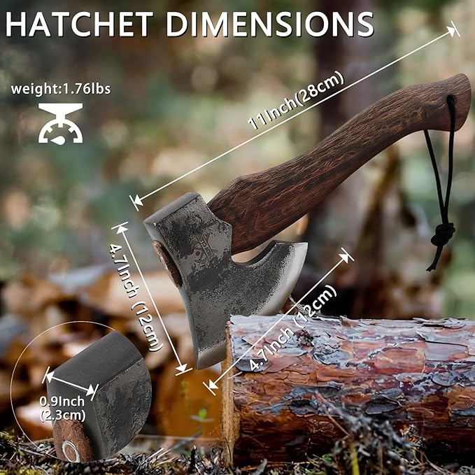 - 【Hatchet Dimensions】This hatchet blade length is 4.7", the full length is 11", and weighs just 1.76 pounds. With its compact design, it is easy to handle and operation.
