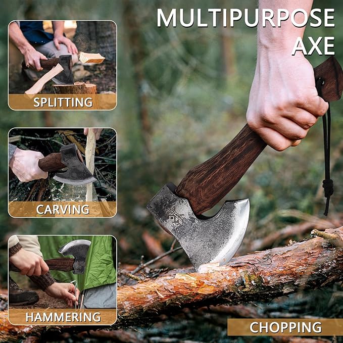 - 【Classic Hatchet With Leather Sheath】This camping axe comes with a leather sheath that provides protection for the sharp blade, it facilitates storage and carrying, while also providing a premium look and feel.