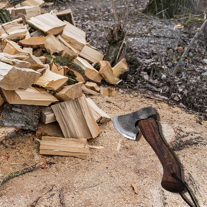 - 【Multipurpose Hatchet】This axe is sharp and suitable for splitting small logs, chopping firewood, and tending garden. Due to its small and lightweight size, it is also a good choice for outdoor camping, hiking, wilderness survival, and adventure.