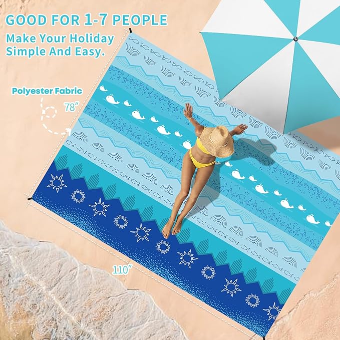 - 🏖️Sandproof Beach Mat Blanket:Effectively prevent water and rips from damaging it.You just need to shake it gently that sand won't stick to the mat.Keep the Blanket clean at all times,washed by washing machine or Sandproof Beach Mat Blanket:Effectively prevent water and rips from damaging it.You just need to shake it gently that sand won't stick to the mat.Keep the Blanket clean at all times.Can be washed by hand or washing machine.