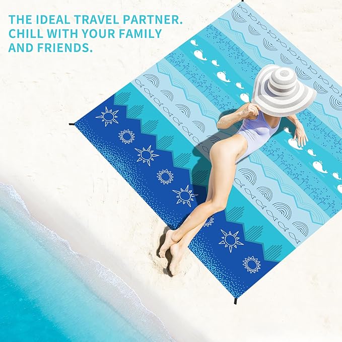 - ⛱ Beach Blanket Oversized:Tear-resistance,dry quick.Also can be used as a rainshed,sunshade,tent,toddler crawl,emergency mat etc.Feel comfortable to lying down.Won't irritate your skin and fine stitches.