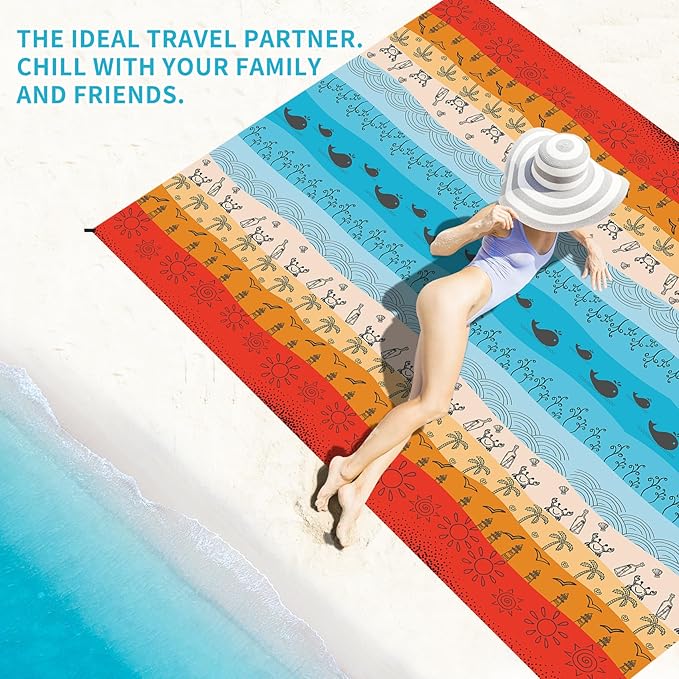 - ⛱ Beach Blanket Oversized:Tear-resistance,dry quick.Also can be used as a rainshed,sunshade,tent,toddler crawl,emergency mat etc.Feel comfortable to lying down.Won't irritate your skin and fine stitches.