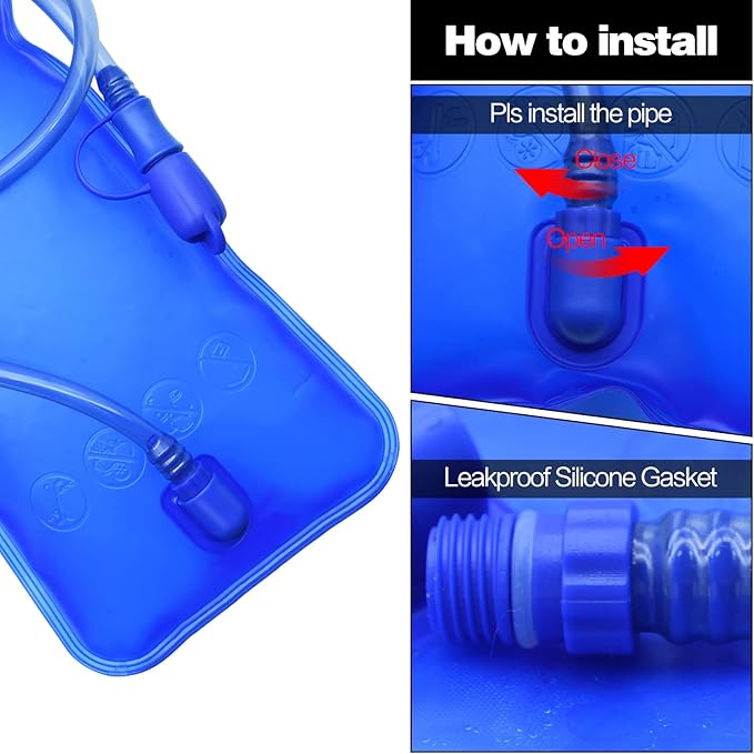 - 【Leakproof】- Hydration bladders adopt high quality double-sealing performance design which is leakproof. Silicone gasket on the end of the water pipe connection and the screw cap can prevent water seepage and leakage. Note: Pls screw the cap tightly to prevent water leakage.