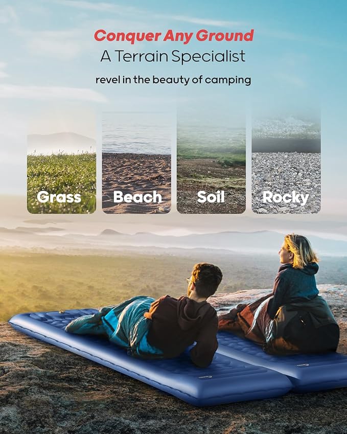 - Enhance Your Camping Experience: The revolutionary inside design of this camping mat is intended to provide you with a cloud-like sleeping. Due to its improved internal structure, the inflatable pad can prevent the situation from contacting the ground even when supporting up to 800 pounds.