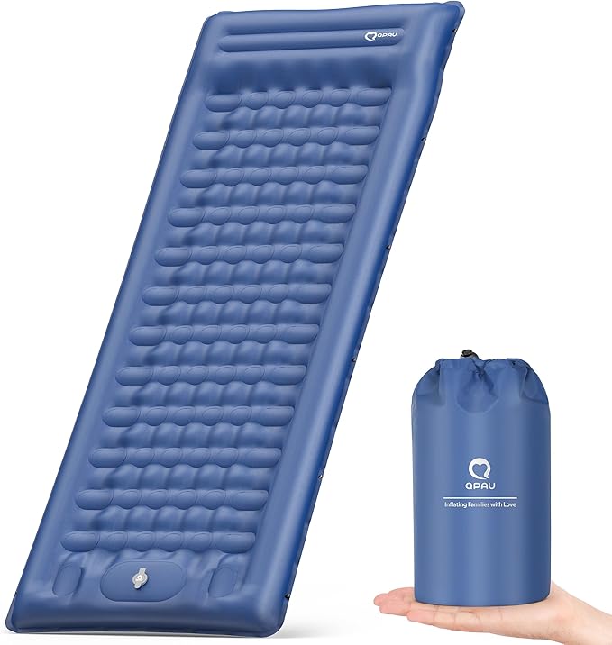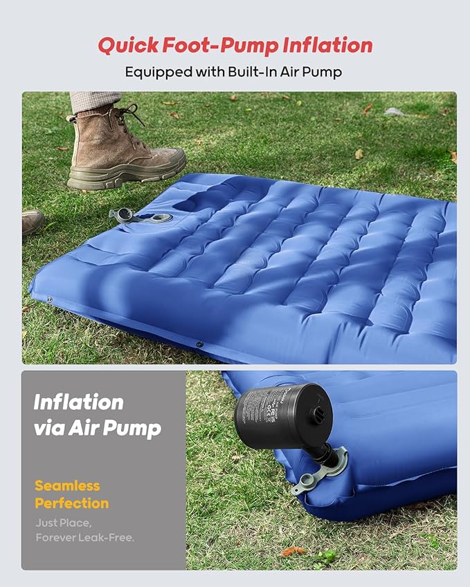 QPAU Sleeping Pad for Camping, Camping Mattress, 76''X26'', 4.7'' Extra-Thick Enhanced Support, with Built-in Foot Pump, for Camping, Hiking - Airpad, Backpacking and Home, (Blue)