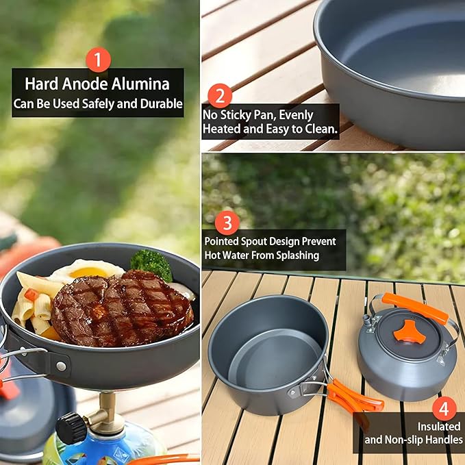 - Outstanding Quality and Service - We Are Committed to Providing Exceptional Product Quality and Attentive Customer Service. If You're Not Satisfied with Our Product, We Are Here to Assist You. Choose Our Camping Cooking Set and Make Your Outdoor Life More Exciting!