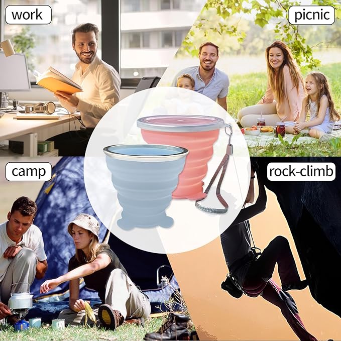- Collapsible Cup, Silicone Collapsible Travel Cup, Expandable Folding Camping Drinking Cup with Lids Reusable Small Portable Mugs Cup for Travel, Camping, Hiking, Beach, Holiday Vacation, Outdoor Sports