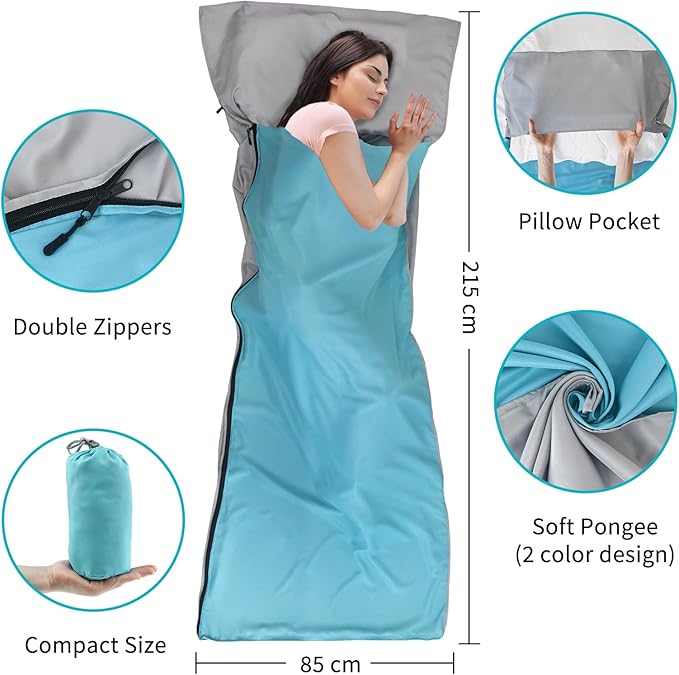 - [SOFT & LIGHTWEIGHT] Made from pongee fabric, which is generally used in the production of lining. Flat and smooth, easy to wash and quick-drying. Light in texture but strong in wear resistance, which promises the sleeping bag liner ultralight and easy to take along with.