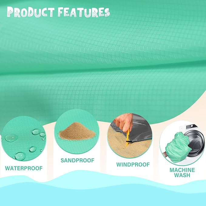 - 🏕BEACH MAT BLANKET WATERPROOF:Effectively waterproof sandproof and tear resistant.You only need to gently shake it while the sand will fall off.Keep the blanket clean at all times,can be washed by hand or machine