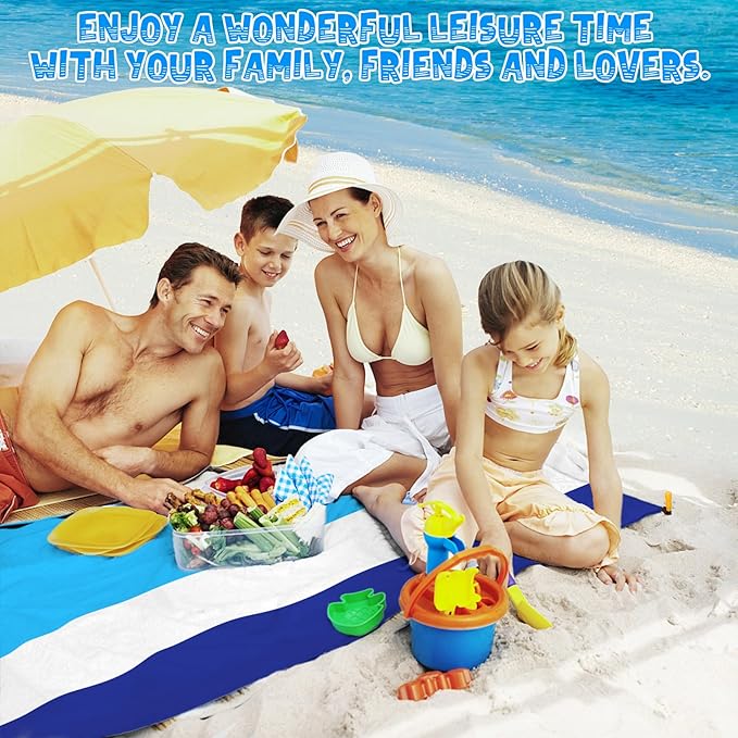 - 🌊BIG BEACH BLANKET:Durable and fast drying,can also be used as a canopy,sunshade,tent,toddler crawling mat,picnic mat,first aid mat,better professional fabric sewing without irritating the skin,providing you a good sense of use.