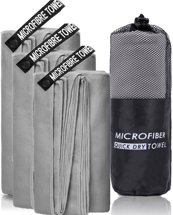 3Pack Quick Drying Soft Microfiber Towel, Sport Super Absorbent Bath Beach Towel Portable Gym Towel for Camping Swimming Running Yoga Golf Hiking Towel (Grey)