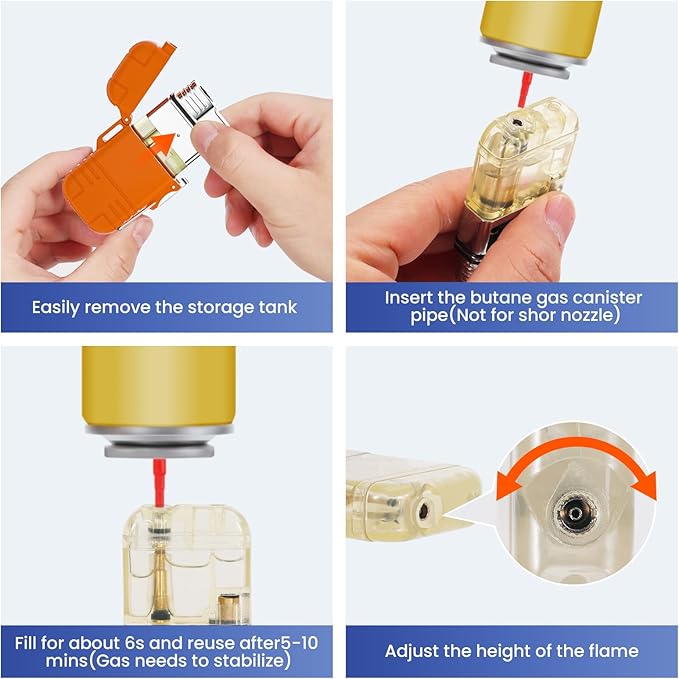 - [Refillable]: The lighter is refillable, providing a cost-effective and eco-friendly solution compared to disposable lighters. Simply refill with butane gas to keep the flame going.