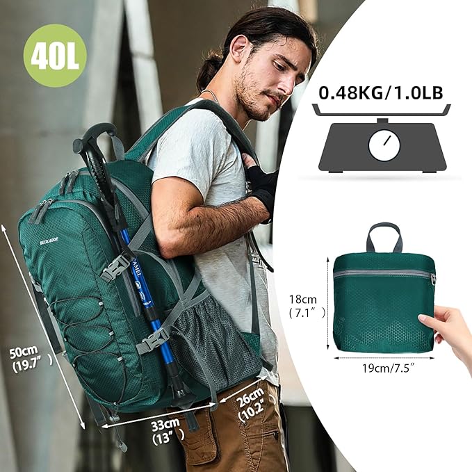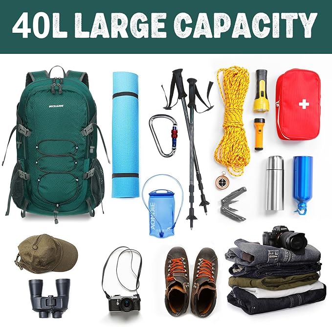 - ROBUST & DURABLE MATERIAL: BECOJADDE 40L hiking bag is constructed with high-quality, water-resistant nylon material, ensuring its durability. It features strong and smooth zippers, built to last.