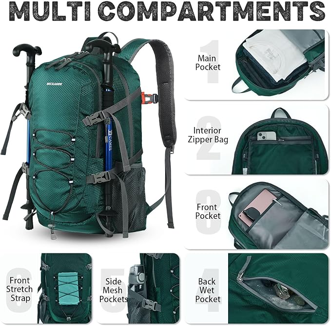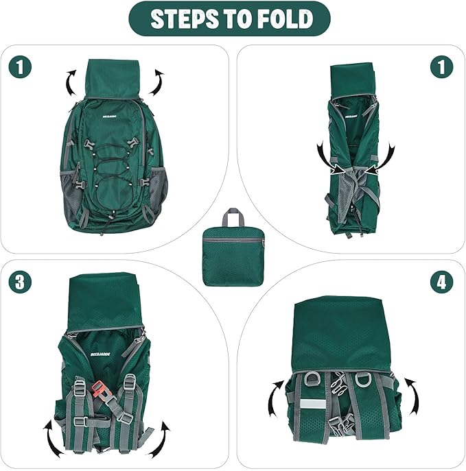 - COMPACT & MULTI-PURPOSE: The compact design of this backpack meets the carry-on standards for most airlines. Whether you enjoy hiking, camping, climbing, cycling, or traveling, this outdoor backpack caters to all your needs. This foldable backpack has versatility and durability, making it an essential travel accessory.