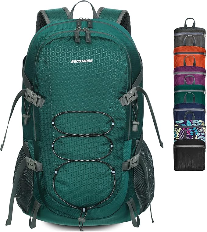 - SPACIOUS & WELL-ORGANIZED: The BECOJADDE packable backpack for travel boasts a sleek, minimalist design with multiple compartments and pockets for optimal organization. This camping backpack includes one main compartment, one wet pocket, one front zippered pocket, two side pockets, and an elastic drawstring. The wet pocket is extremely effective for keeping electronics clean and dry or separating wet clothes from other items.