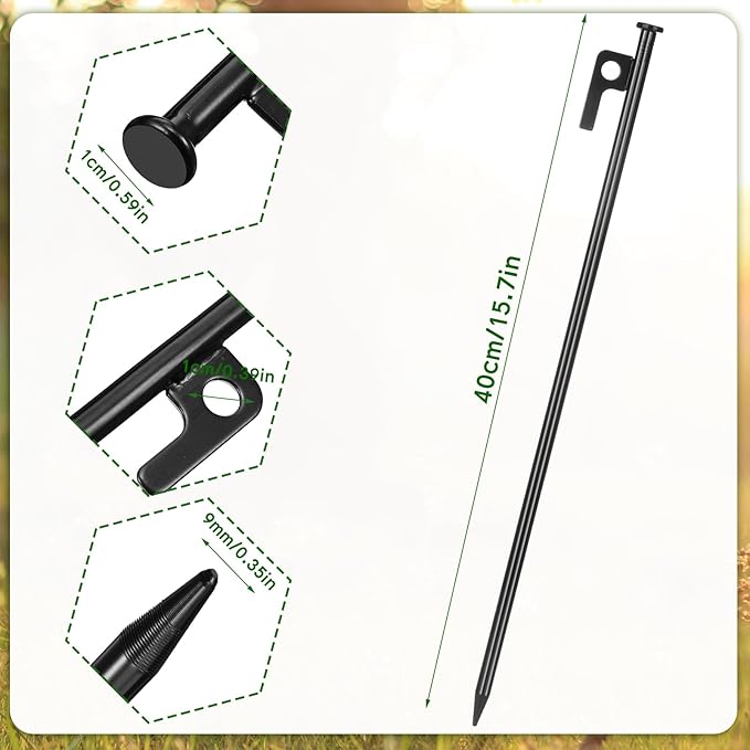- Practical Size: about 16 inch, which is long enough to get deep into the ground for a secure hold, these metal stakes for ground are easy to spot against various ground surfaces, ensuring that they will fit your camping bags without taking too much space