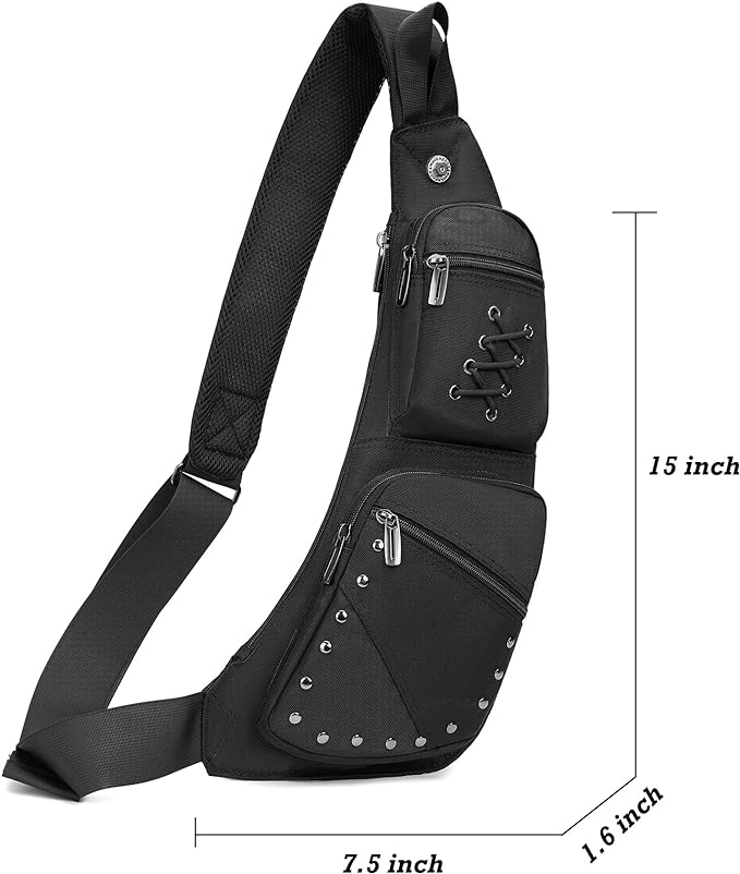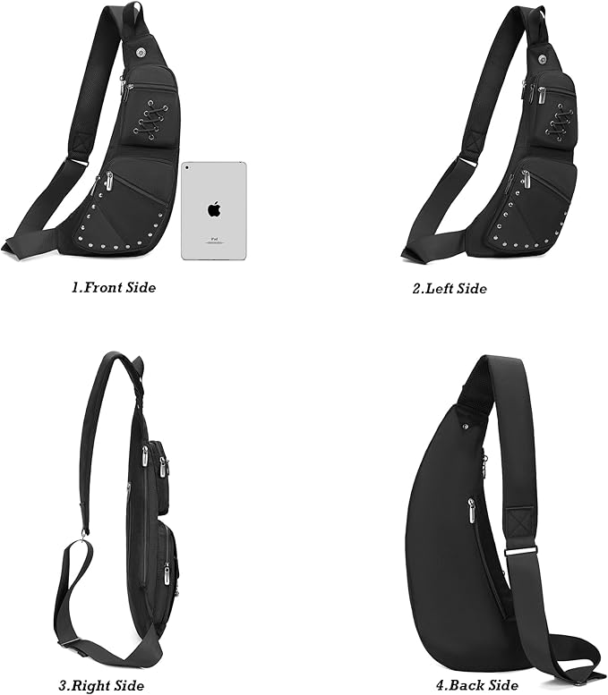 - Material: This sling bag is well constructed of water-resistant nylon material. Lightweight, strong and sturdy. Not easy to be scratched. The size of it is bigger than a fanny pack, but not as big as a backpack.