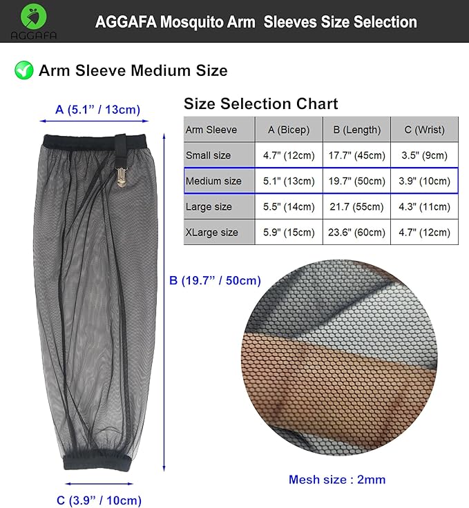 - Breathable & Light weight: Stay cool and comfortable during outdoor activities with AGGAFA Mosquito arm sleeves. from lightweight polyester with fine mesh holes, they provide excellent ventilation while helping to reduce the likelihood of contact with mosquitoes and bugs