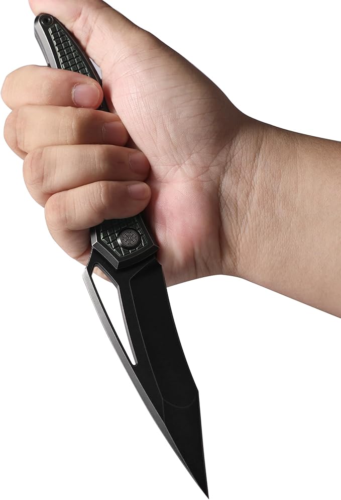 - PIKAL KNIFE STYLE:Reverse grip folder.The reverse handle design can add different types to your knife collection. More suitable for reverse or “icepick” grip. Incredibly comfortable when held in the reverse. with the blade extending from the thumb side of the hand and with the blade extending from the bottom of the fist. Make the action more stealthy.
