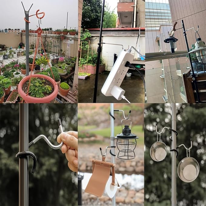 2 Pack Bird Feeder Hanger Pole Attachment Shelf Pole Hooks Stand Adapter for Tent Lamp Lantern Light Outdoor Birdfeeder Flower Pot Garage Camping Storage Organization