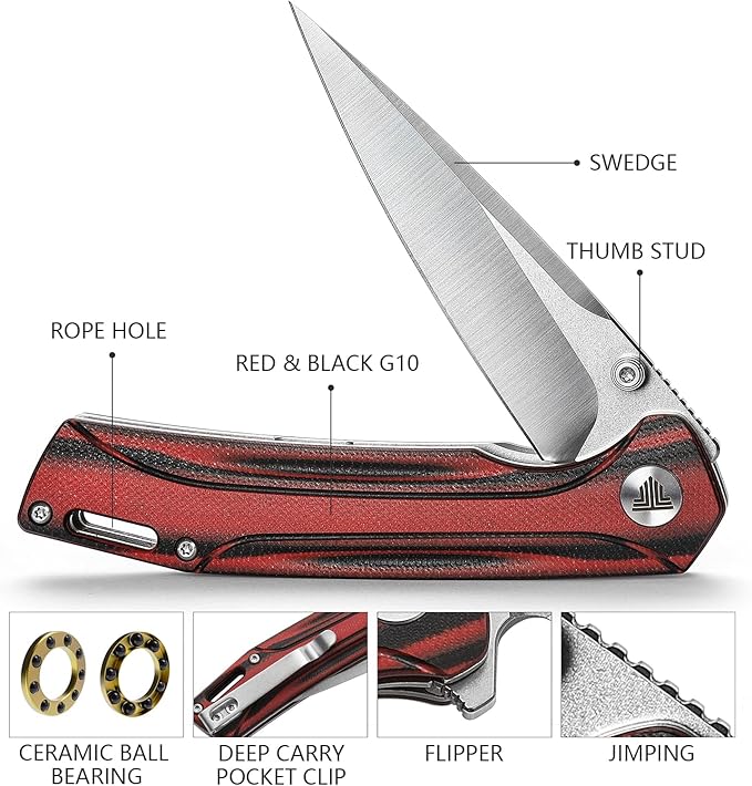 - Open Operation:Flipper and thumb stud openers with ceramic ball bearing.
