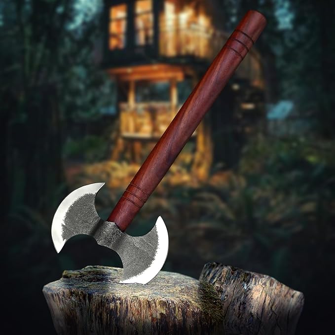 - Hand Forged carbon Steel Double Head Axe Hatchet Viking Throwing, camping, hunting, survival, hatchet, double head axe with Unique Design.