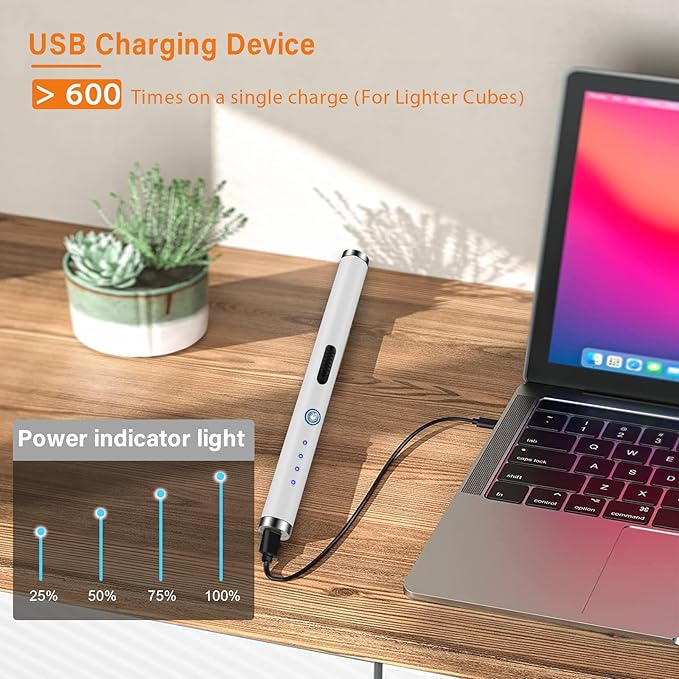 - 【USB RECHARGEABLE - ECONOMICAL】:USB cable is included for your convenience to plug the power into any USB or charger. The flameless Candle Lighter can save you money and reduce the use of gas, so that you can contribute to environmental protection.