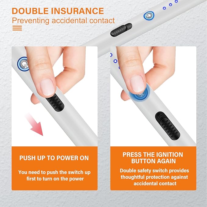 - 【UPGRADE VERSION - DOUBLE ARC CANDLE LIGHTER】The double arc design enlarges the contact area between the arc and the candle core, making it easier to ignite. The ignition is efficient and stable, and the flame can be ignited by gently pushing. The design without gas or oil makes it safer without open flames.