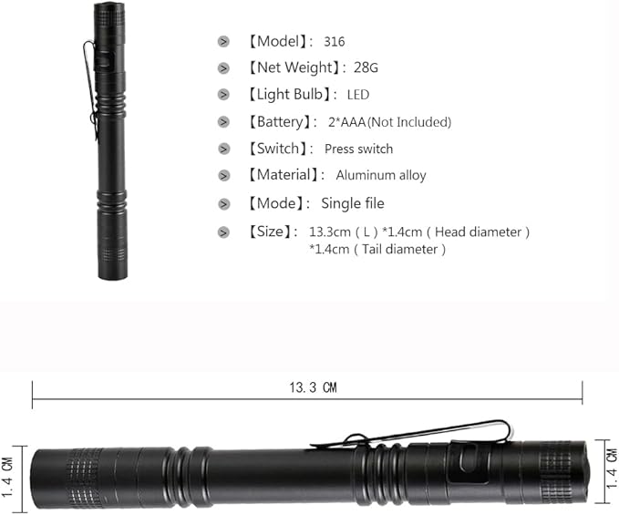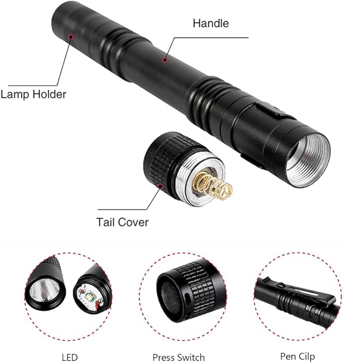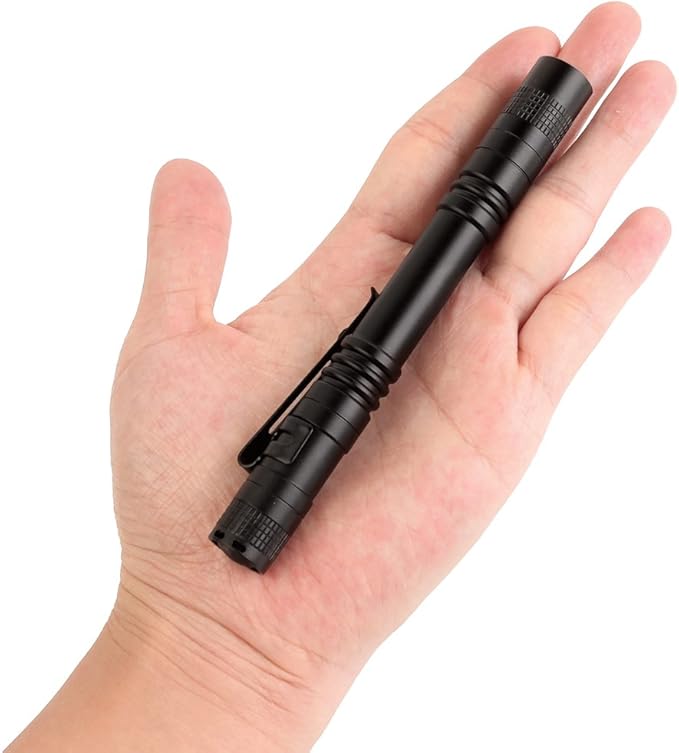 - 【Compact】Each pen flashlight is about 13.3 cm/ 5.2 inches. This sleek and portable pocket flashlight is compact enough to fit into small, tight spaces and illuminate hard to see work areas, making it ideal for close-up tasks.