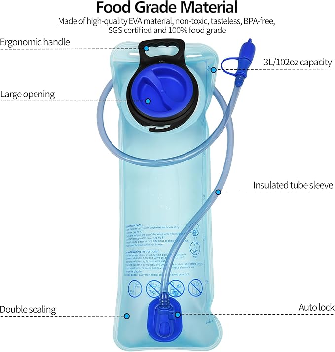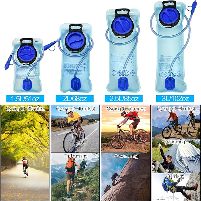 - 【Package Include】- Package includes 2 pack 3L blue hydration bladder. It is suitable for long-time outdoor activities, hiking, climbing, camping, cycling (0- 60miles), etc.