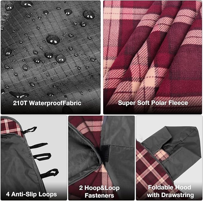 DUKUSEEK Stadium Blanket Waterproof Windproof, Outdoor Hooded Blankets for Camping, Sporting Events, Picnic and Car - Insulated Foldable Blanket and Throws, 79"x 59"
