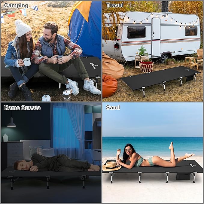 - Explore More Uses: Have a sound sleep even outdoors! Weighted only 7.09 pounds, this folding camping cot is portable and ideal for various adventures, like camping, hiking, hunting, concerts and more. Plus, you can also place this camping bed in your living room, garden, etc. for a good nap!
