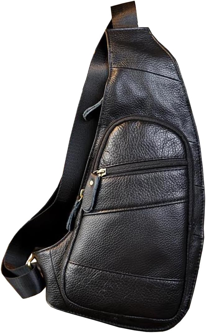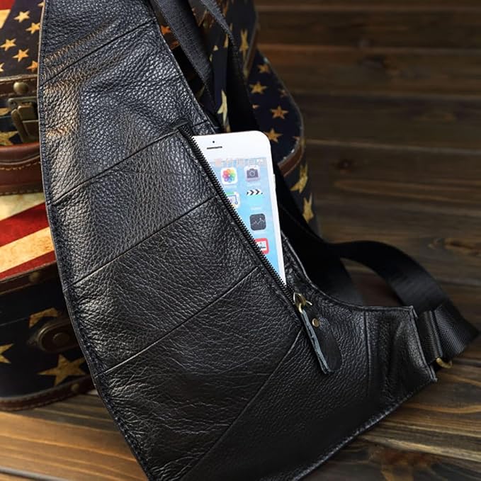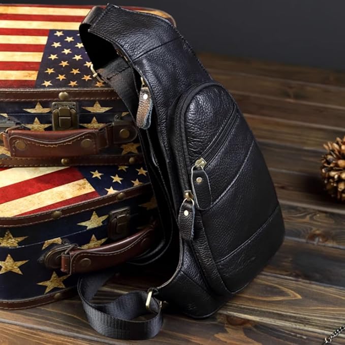 KPYWZER Genuine Leather Sling Backpack for Men Women Crossbody Shoulder Chest Bag Day Pack Outdoor Travel Camping Tactical Daypack Black