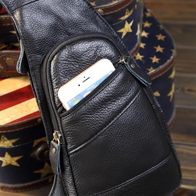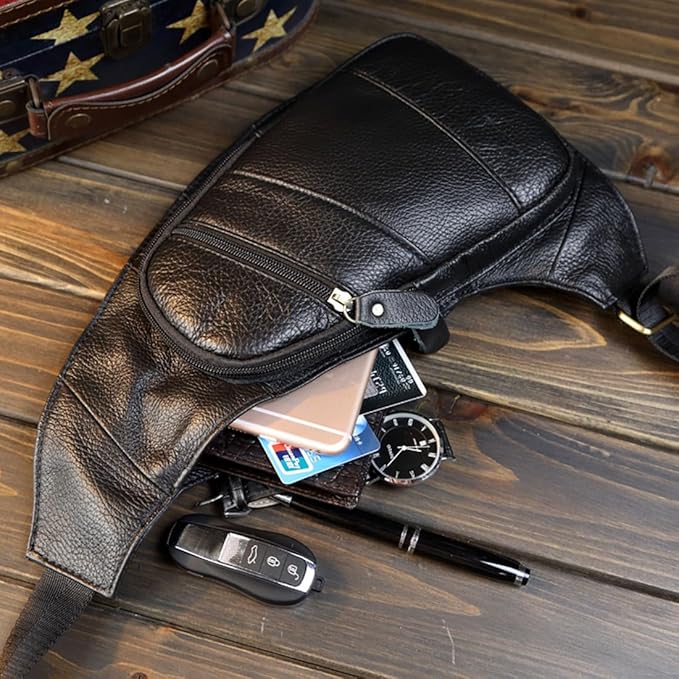 - 【Structure and Material】:Durable & Vintage Leather Crossbody Sling Bag: This sling bag is made of cowhide genuine leather, top-quality zippers and durable adjustable cross-body strap clip, fabric lining, zip closure, leather and excellent workmanship, stylish, vintage, fashion and luxury, which shows your outstanding temperament when business/travel.