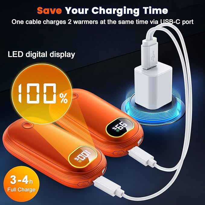 - 【Hand Warmers Rechargeable 2 Pack】Our hand warmers come with 2 units, a total of 14000mAh for lasting warmth and power. Our rechargeable hand warmer also serves as a power bank and offers real-time battery and heating status through the LED display, no more battery anxiety. A must-have for warmth and convenience!
