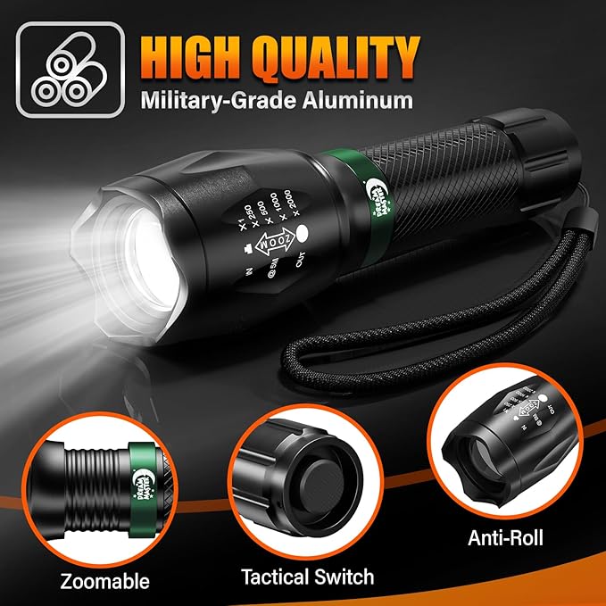 - STRONG BRIGHTNESS: Our high-lumen flashlight offers exceptional brightness, perfect for outdoor adventures and emergencies. Illuminate any situation with our LED flashlight