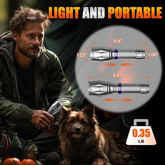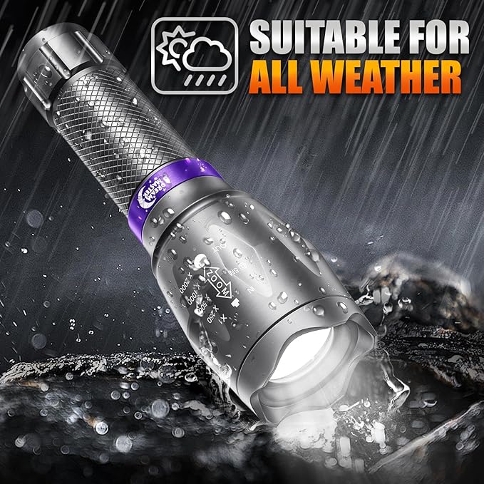 - WATERPROOF & COMPACT DESIGN: Don't let the weather stop you. Our 2 small flashlights designed to withstand the elements with an IPX4 waterproof rating. Compact at 5.11*1.25*1.06 inches (expanding to 5.51) and weighing just 0.35lb, it fits effortlessly in your pocket, backpack or purse