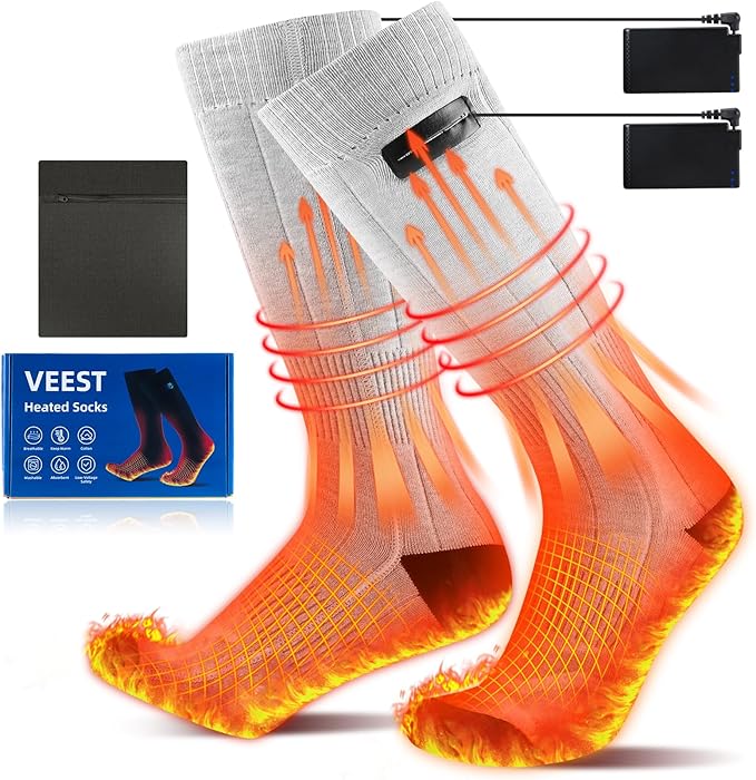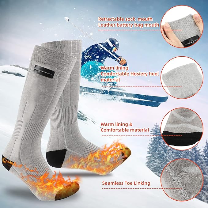 - 【Safe Heating&5000mAh Battery】The battery heated socks Include a pair of 3.7V 5000mAh rechargeable batteries. Providing you with up to 7-10 hours of enduring warmth. Rechargeable heated socks have heating temperatures up to 149°F, the heating element is on the bottom of the foot near the toes, helping focus heat in the front of the foot to keep warm