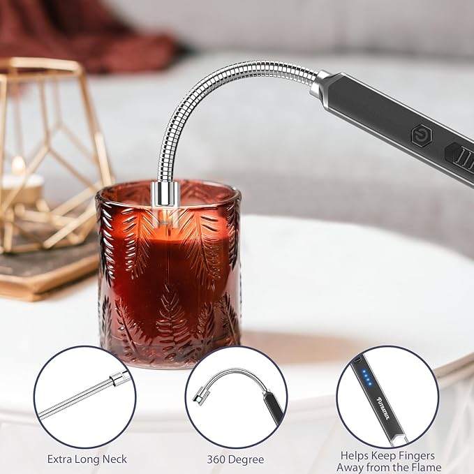 - Flexible and Lightweight: Our electric long Lighter for candles have a long flexible neck (10cm or about 4 inches) that can rotate 360 degrees for different lighting angles. The lighter is easy to carry and use for Camping, BBQ, indoor and outdoor purposes