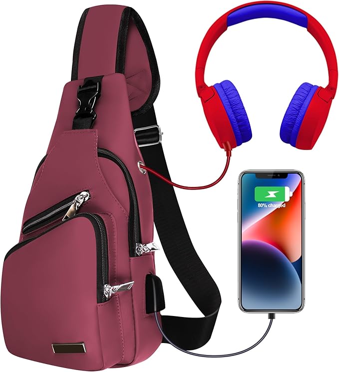Sling Bag for Women Mens Crossbody Bag, Chest Bag Sling Backpack with USB Charging Port for Walking Hiking