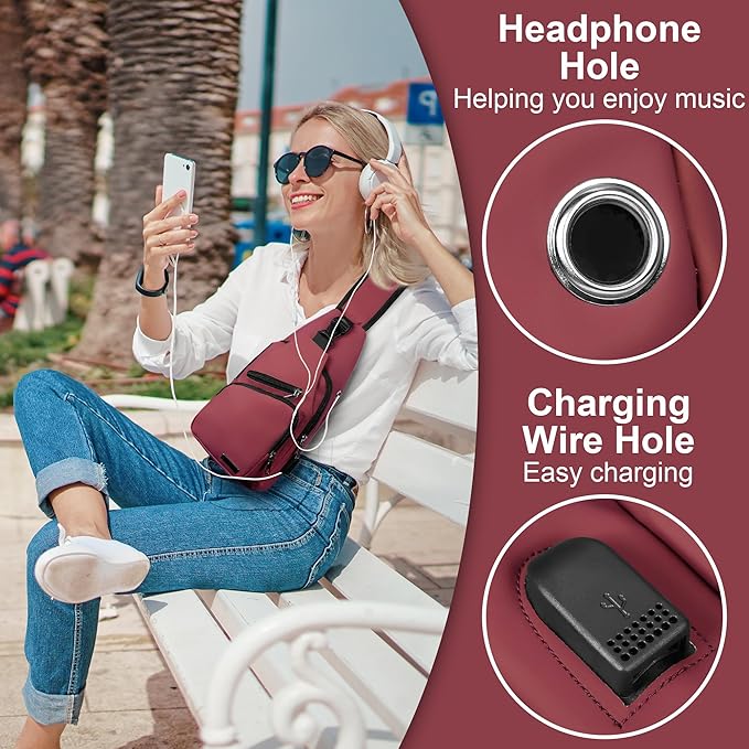- 【USB Charger Port & Headphone Hole】Cross body bag with USB Charging Port & Headphone Hole, no charger and charging cable, you may charge your mobile phone with the USB charging port and enjoy music easily. A Mobile Phone Pocket in shoulder strap makes you convenient for charging and listening while walking.
