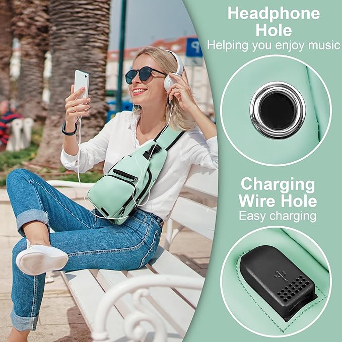 - 【USB Charger Port & Headphone Hole】Cross body bag with USB Charging Port & Headphone Hole(without portable USB charging cable), you may charge your mobile phone with the USB charging port and enjoy music easily. A Mobile Phone Pocket in shoulder strap makes you convenient for charging and listening while walking.