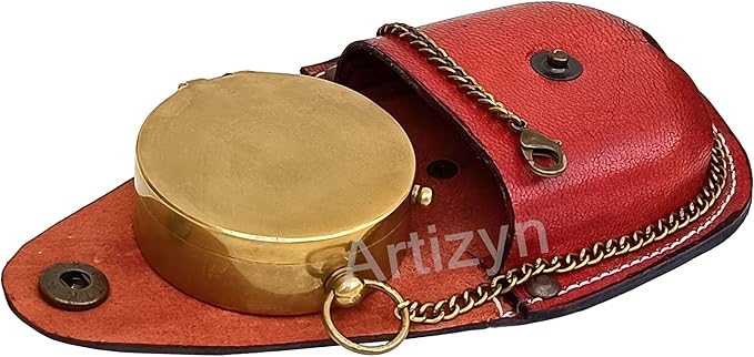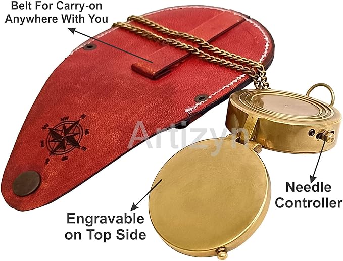- This Handy pocket size compass is convenient to carry anywhere. Size of Compass : 2" x 2" x .75" Inches; Chain Length : 12" Inches; Leather Case Size : 2.6" x 1.2" x 2.6" Inches. It Is a portable device that can be easily carried along in a backpack and has a compact design. Perfect gift for Travelers, Nautical Collector, Architects & Table Décor. It is carefully packaged to ensure you receive it in perfect condition.