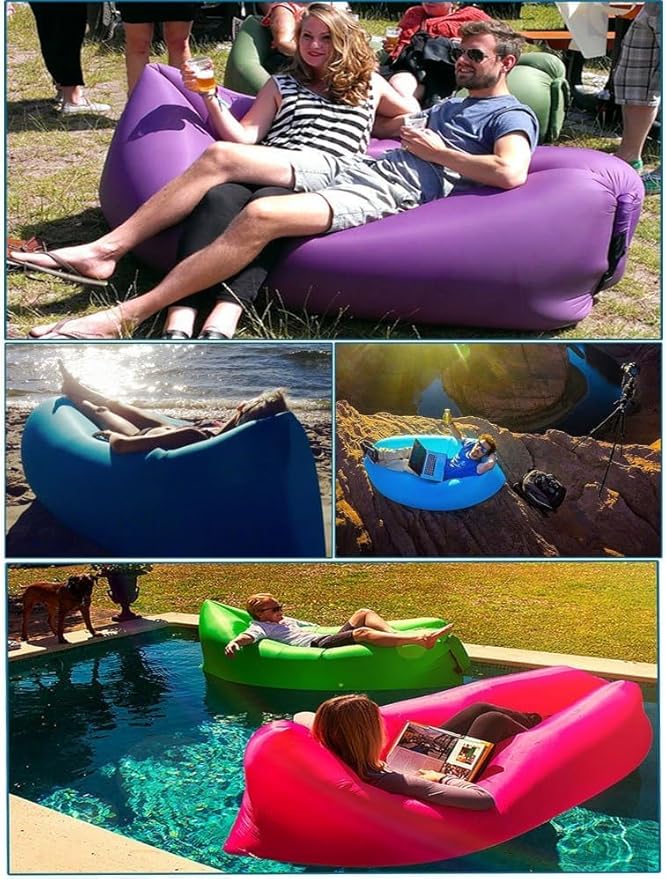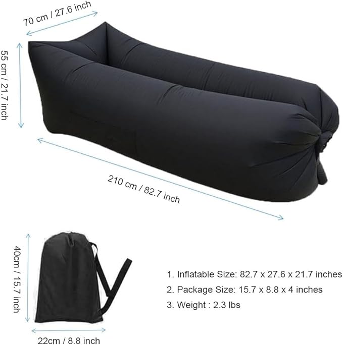 - ★ Portable and perfect for outdoor & indoor:With a carrying bag, specially suitable for camping hiking, beach swimming, outdoor BBQ, parks, backyard; You can use it as an inflatable bag, air hammock, air bean bags, cloud lounge, lazy bag, air filled lounger, etc