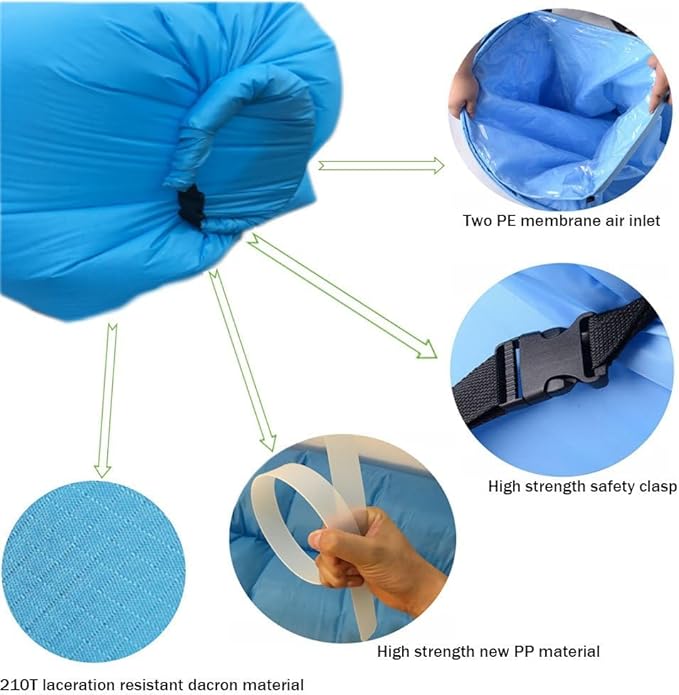 - ★ Portable and perfect for outdoor & indoor:With a carrying bag, specially suitable for camping hiking, beach swimming, outdoor BBQ, parks, backyard; You can use it as an inflatable bag, air hammock, air bean bags, cloud lounge, lazy bag, air filled lounger, etc