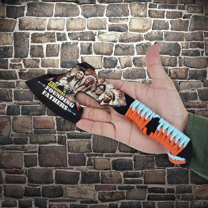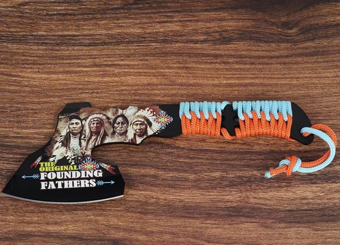 - 9.50" overall/3.75" Blade, Tomahawk with 4 most popular Indian Chief pictures with printing Original Founding Fathers.