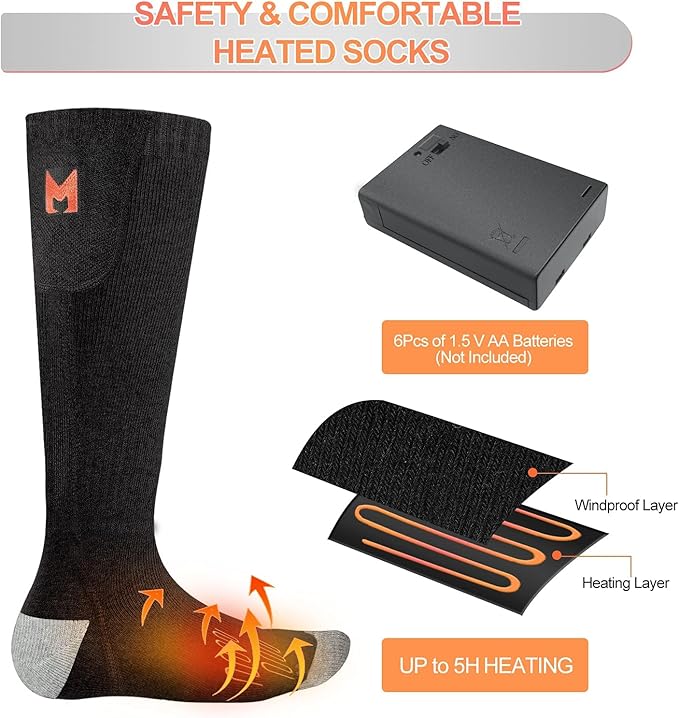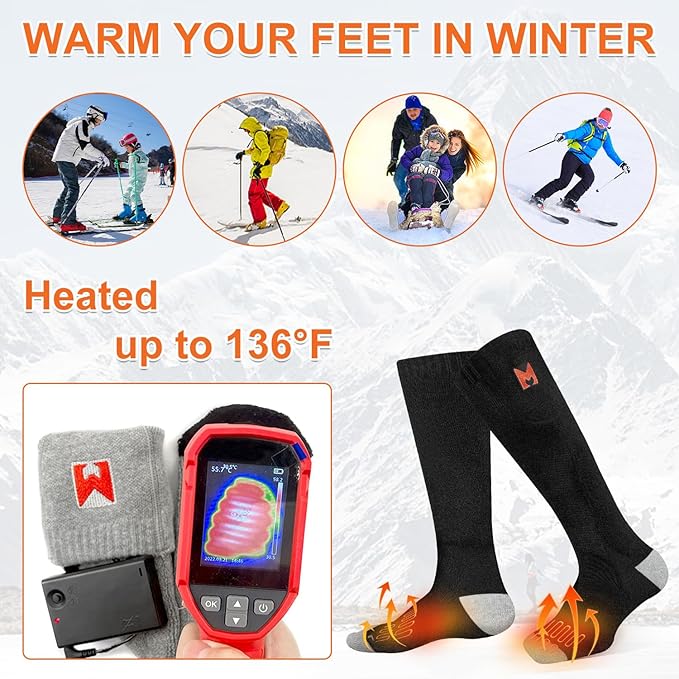 Heated Socks, Electric Heated Socks for Men Women, Battery Heated Socks for Skiing Camping Cycling Hunting Fishing Outdoor Warm Winter