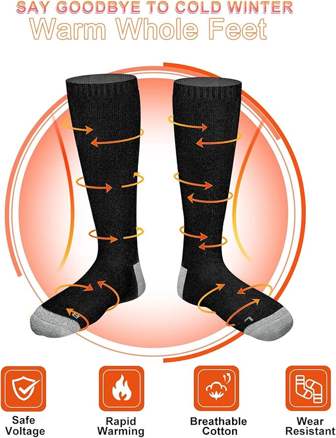 - 【Comfortable Heated Socks】The new generation of upgraded heated socks are made of higher quality polyester blend material, perfect for supporting your feet, more breathable and sweat-absorbent, cozy and durable, allowing you to enjoy the warmth of your feet in winter.