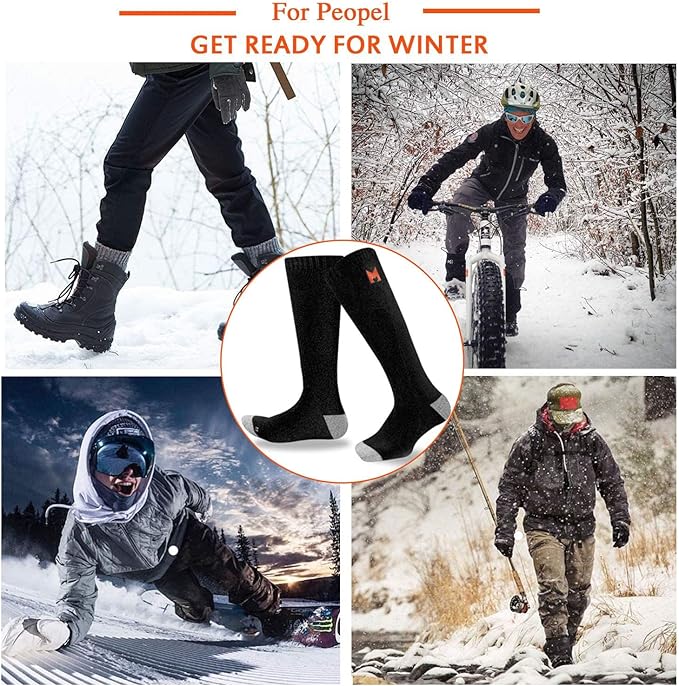 - 【Outdoor Sports Lovers' Choice】This heated socks are suitable for all occasions, whether you are a person who tends to have cold feet in winter, or you like outdoor sports such as skiing, fishing, camping, hiking and biking. It can protect your feet from freezing!